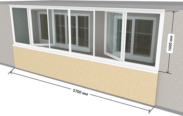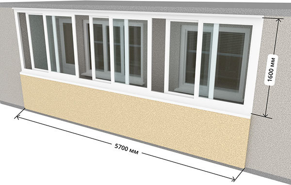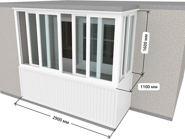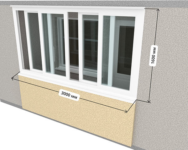 Размер остекления: 850*3000*1600